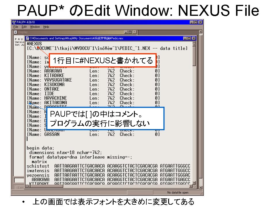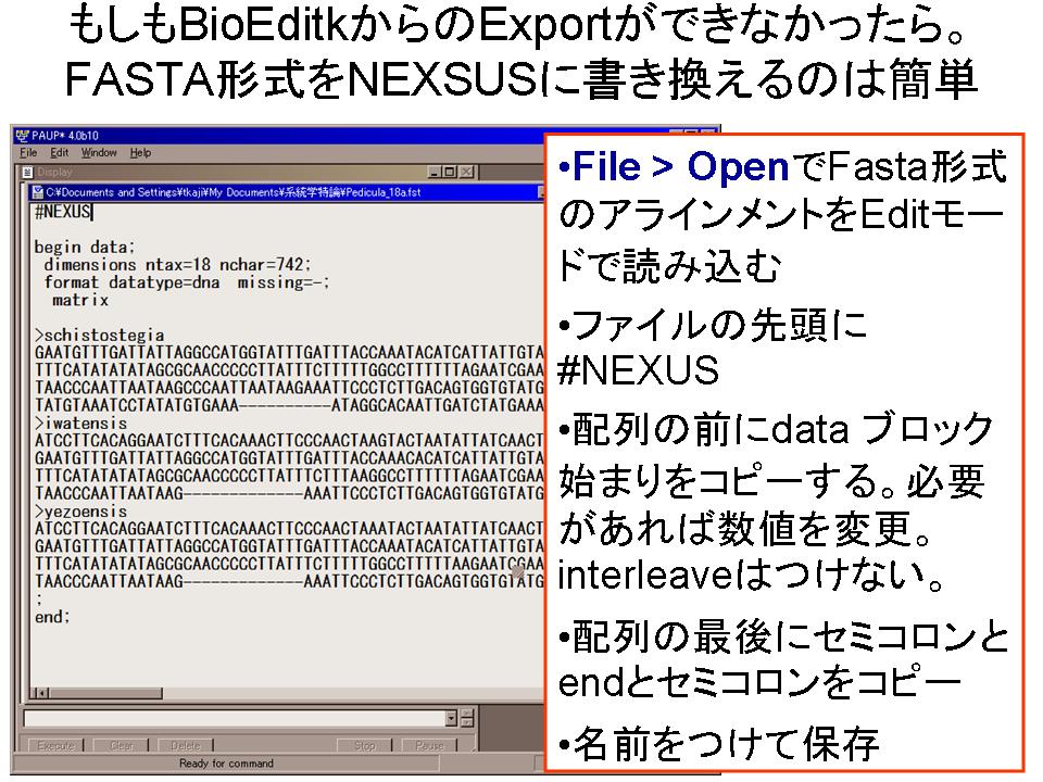 〔参考〕FASTA形式からNEXUS形式には簡単に変更できる