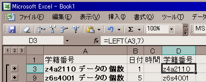 エクセルには'関数'という便利な機能がある。ここでは、「セルに入っている文字列の一部だけを抜き脱す」関数:LEFT()を利用する