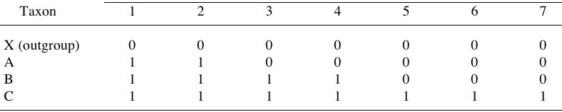 Infer the most parsimonious trees using the data shown in Table 1.