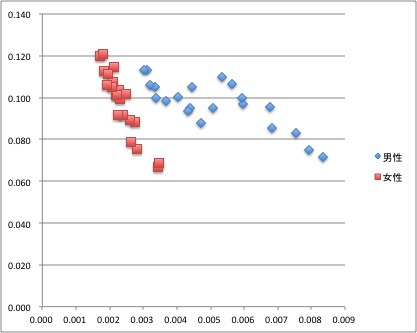 データは、前回授業で用いた死亡率の表を使う。扱いやすいように、エクセルファイルにしたものを、ここに添付しておくので、ダウンロードして開いてみよう。