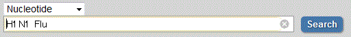 画面の上部の入力欄で、プルダウンメニューをつかって検索対象を"Nucleotide"(意味:「塩基配列」)にして、画面の上の方にあるテキスト入力フィールドに下のキーワードを入力してみよう。準備ができたら"Search"をクリックしよう。