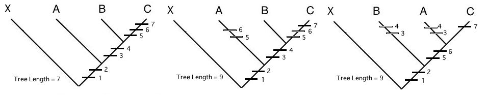 3-2: 共有派生形質(synapomorphy):派生的であると判断された形質状態で、2つ以上の分類群に共有されているもの