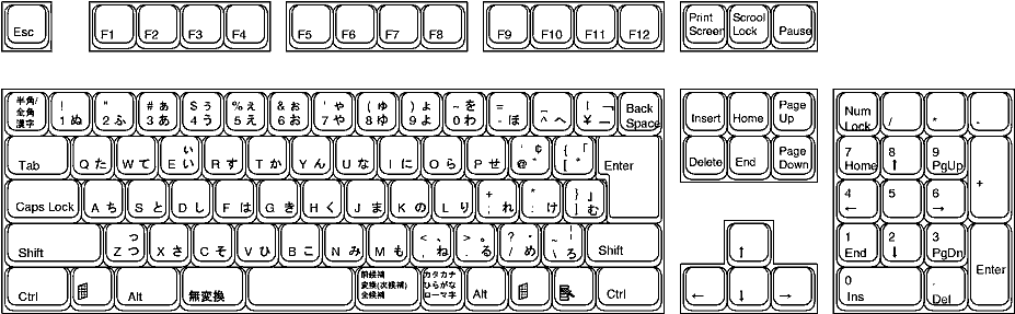 - <タブ>のところではキーボード中段左端のTabキーを押す