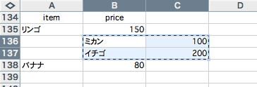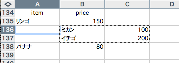 の値の入ったセルをクリック