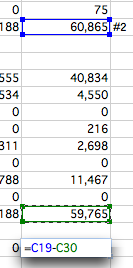 - 差額を求める#5のセルをクリックして、= を入力し、引かれる方の値が入ったセルをクリック、- を入力、引く方