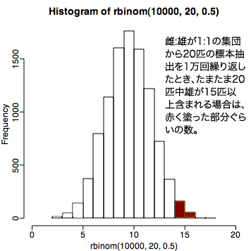 生態学などのマクロ系の生物学では、上のような方法で標本を採集し、母集団の性質の解析に統計学的手法を用いることが、非常に多くある。この授業では、統計学全般について語っている時間は無いので、ほんのさわりしか扱わないが、下に示す参考書などを読んで、勉強しておいて欲しい。受験で培った数学力が落ちておらず、学問に対する情熱が非常に高い、1年生の今が統計学習得のチャンスですぞ!