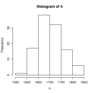 - まず、Rにデータを取り込む。データは数が多いし空白で区切られているので、c()を使ってデータを取り込むよりは、scan()という関数を使って、h というオブジェクトにデータを入れる方がいい(データの取り込みには他にもいろんな方法があるが、ここではコピー・ペーストで行えるscan()を使って解説する)。