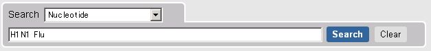 画面の上部に"Search"(意味:「検索」)というテキストフィールドの上の検索対象を"Nucleotide"(意味:「塩基配列」)にして、画面の上の方にあるテキスト入力フィールドに下のキーワードを入力してみよう。準備ができたら"Go"をクリックしよう。
