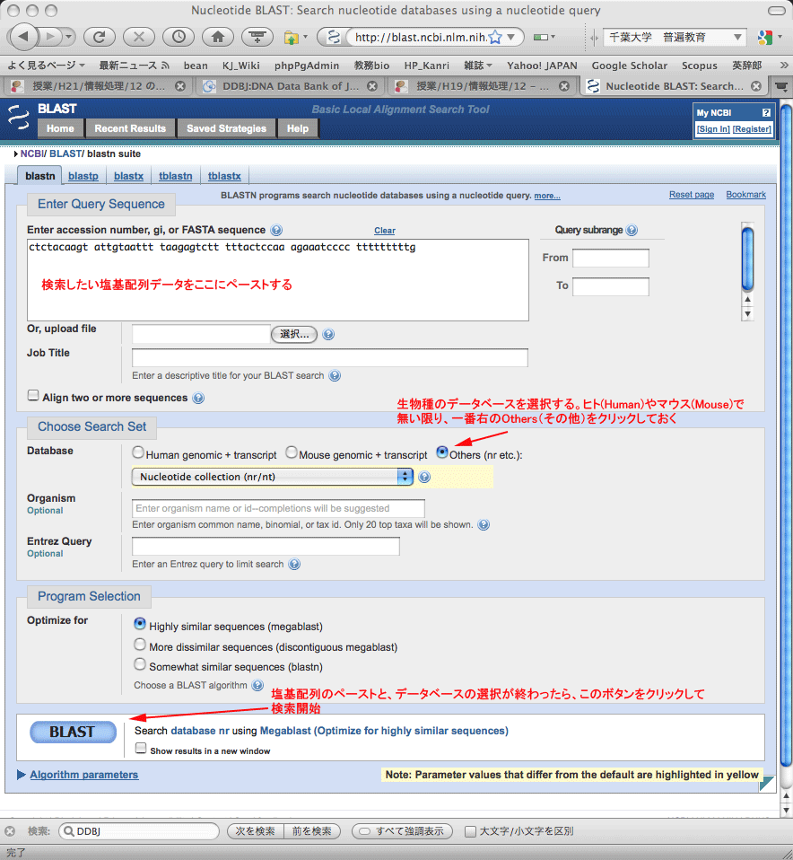 実験で得られた遺伝子の塩基配列から、似た遺伝子を探して働きを推測するときに、BLASTサーチは非常に有効だ。