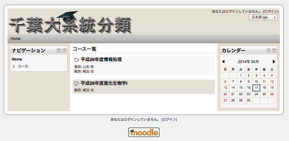 この授業では、課題の提出や成績の確認は、授業専用のmoodleページを用いて行う。