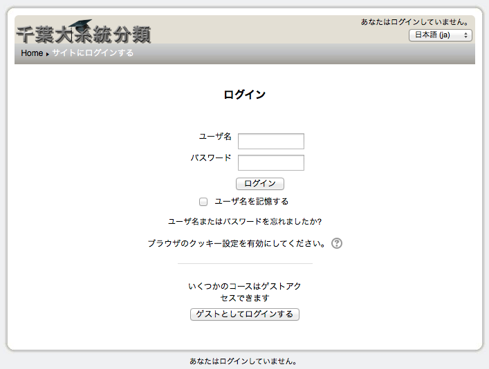 - 画面上のリンクをクリックすると(あるいは、しばらく待つと自動的に)、''「千葉大系統分類」というページが表示される。