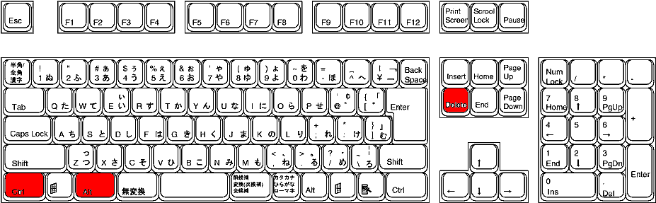 - ''Ctrl+Alt+Delの3つのキーを同時に押す