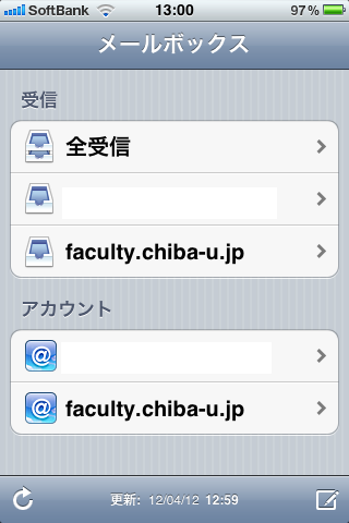 - 4. 「メール」を開くと、設定した統合メールのアカウントを送受信できる。